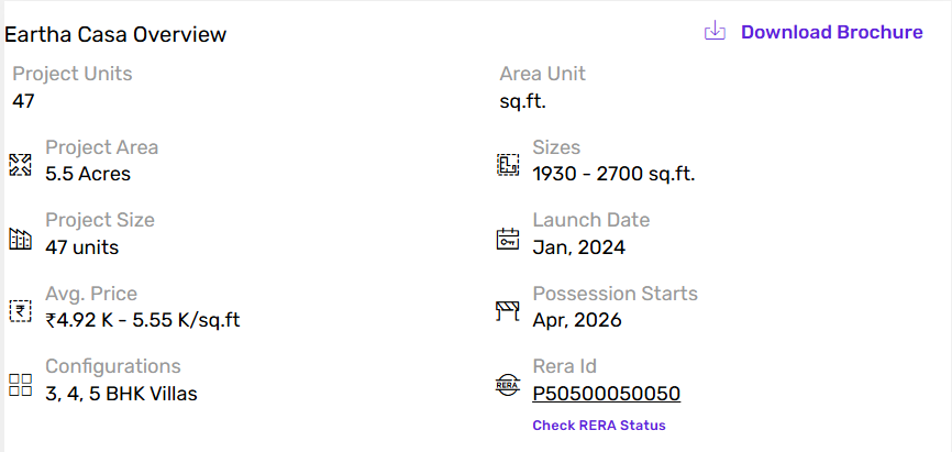 - Premium Gated Villa Community spread across 5.5 acres